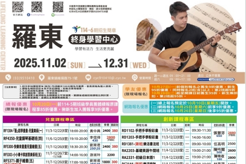 【罗东学习中心】114-6期新课开跑!